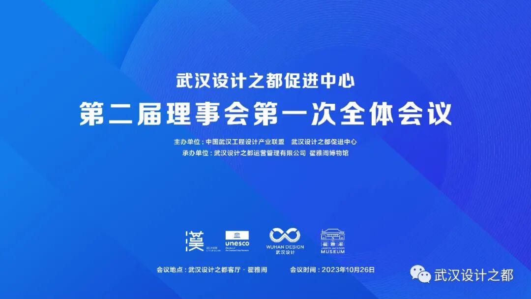 2023年10月26日上午,武汉设计之都进中心第二届理事会第一次全体会议在武汉设计之都客厅——翟雅阁召开。武市城乡建设局副局长张湖林,深圳市文化创意与设计联合会常务副秘书长徐挺,武汉土木建筑学会理事长、全国工程勘察设计大师徐杨青为大会致辞,武汉设计之都促进中心理事长金志宏主持会议。武汉市城乡建设局勘察设计与科技处(设计之都建设处)处长肖梦奇,武汉市设计产业促进中心主任陈彦,湖北省勘察设计协会秘书长杨欣蓓、武汉勘察设计协会副会长林琨,及促进中心理事会各成员单位代表出席会议,齐聚武汉设计之都客厅——翟雅阁。