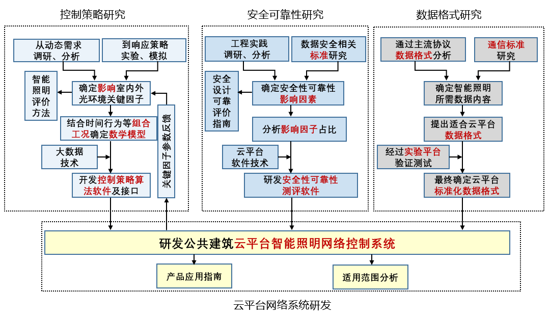 研究了基于行为模式与功能需求的智能照明系统设计、实施策略、验证措施的评价方法以及相关控制策略算法;基于云平台智能照明系统安全性、可靠性、自适应、强鲁棒的照明网络系统测评关键技术;符合云平台建设需要的功能指令和代码,并根据公共建筑的空间特点和设备形式研究地址编码及智能照明控制系统通信协议中的标准数据格式,提出适用于云平台的标准化数据接口;研发了基于大数据云平台标准数据格式的公共建筑云平台照明网络系统,实现各类设备接口的标准化,并给出适用范围分析研究报告和相关产品应用技术指南。